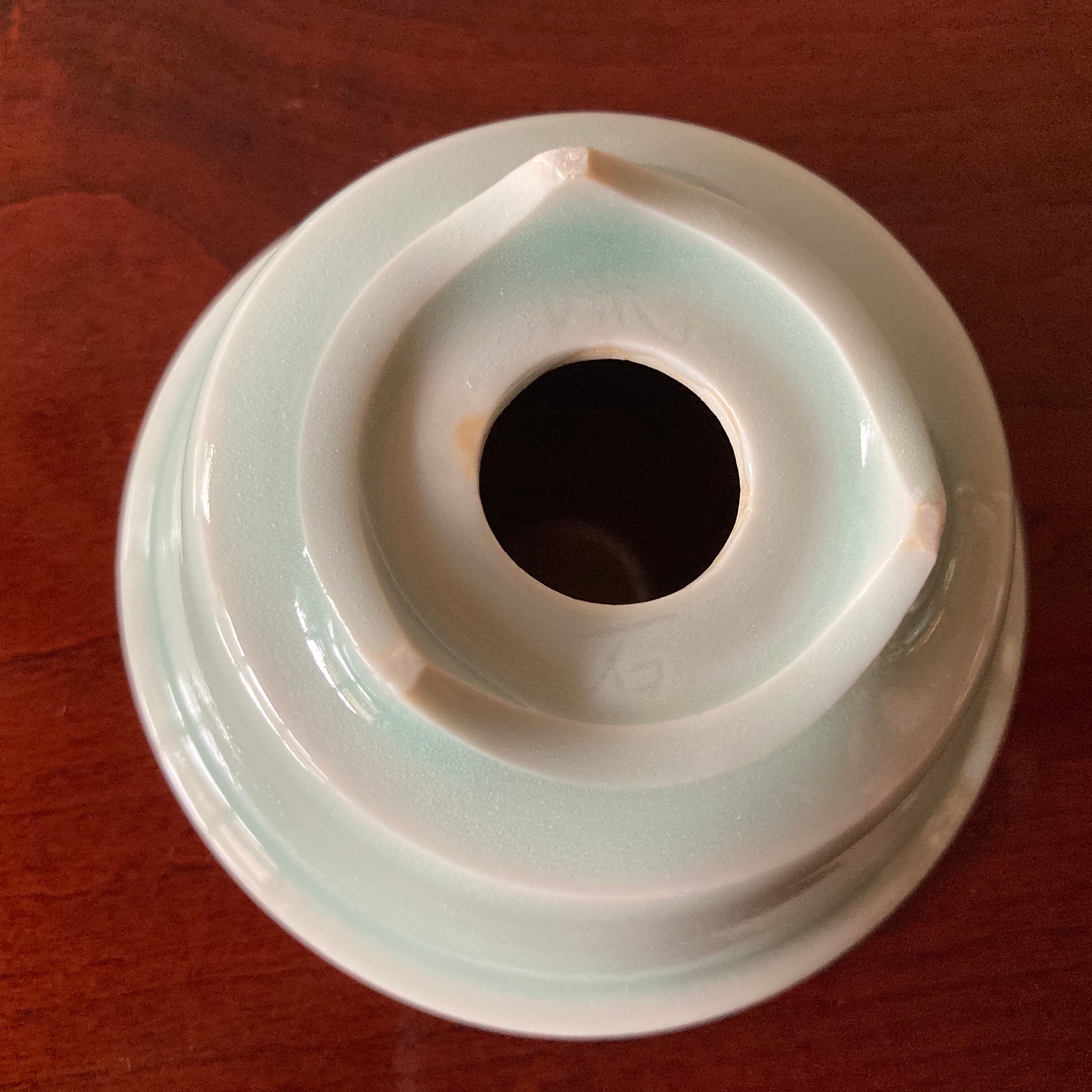 磁器に青白磁の釉薬をかけています。