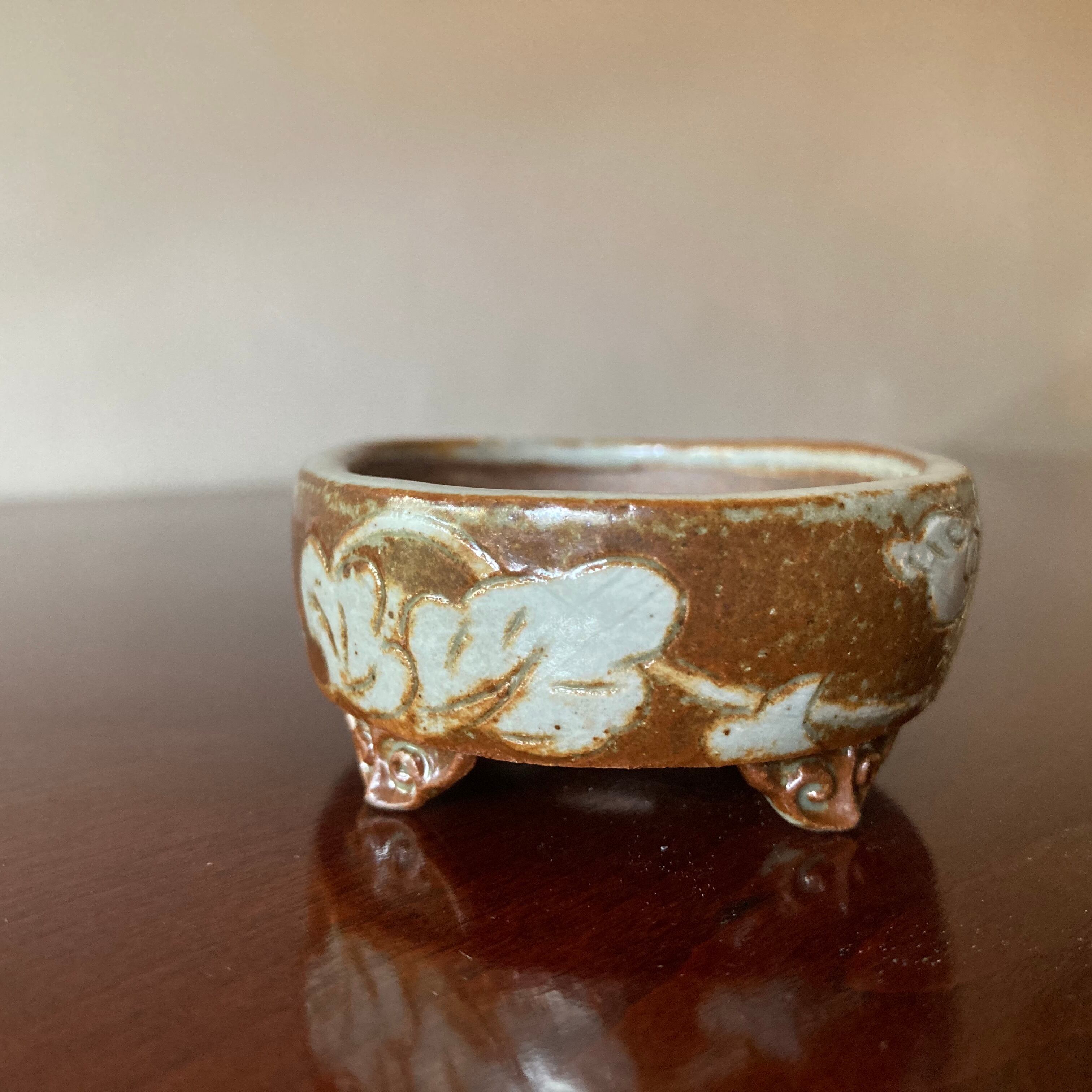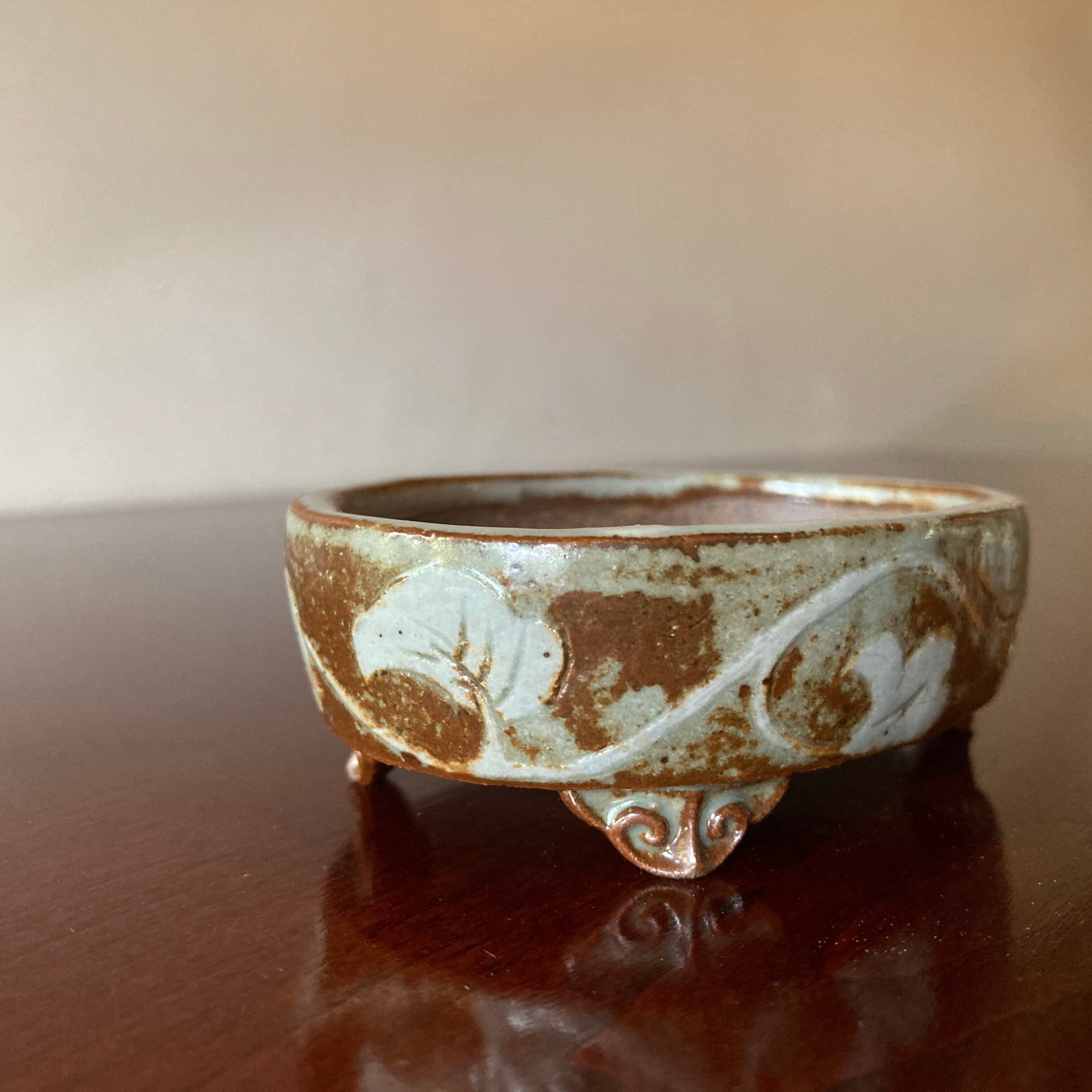 唐草紋 掻き落とし 楕円子盆栽鉢1